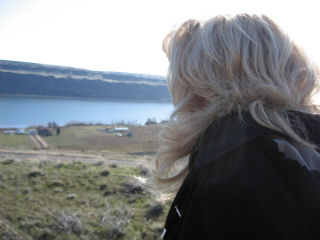 One of Marilyn's favorite sights, the view of the Columbia Gorge from Sam Hill's grave at Stonehenge.